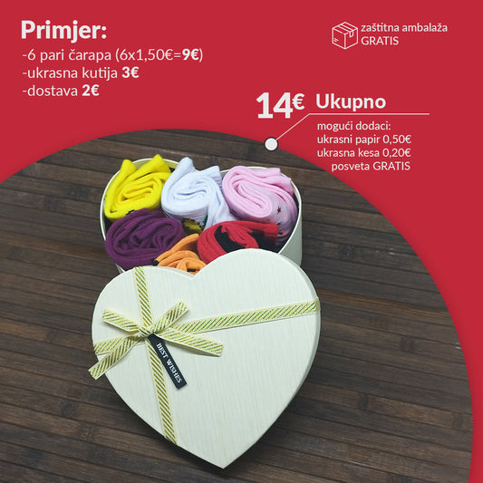 Srce moje - kutija u obliku srca + 4 para čarapa