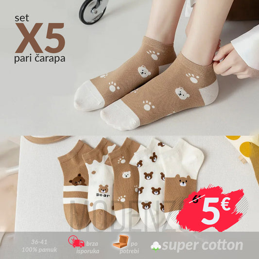 Ženske kratke čarape sa medvedićima (set 5 pari)