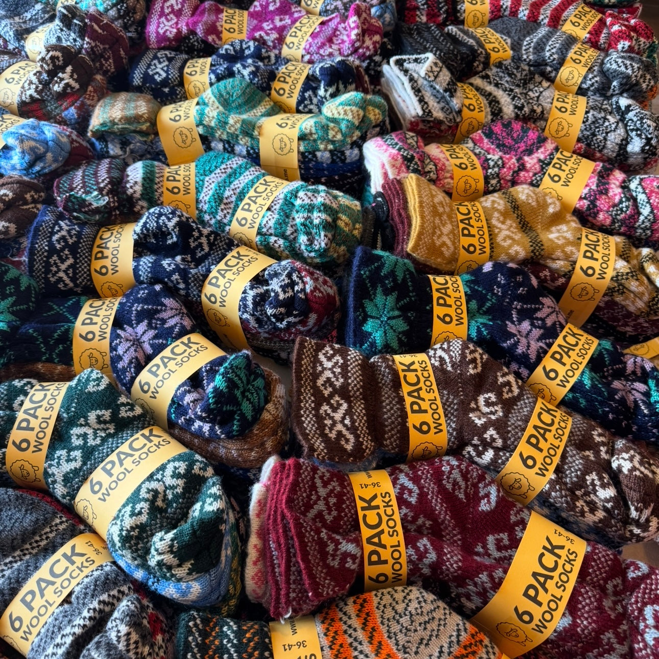 Nasumično izabranih 6 pari vunenih papa stadardne dužine po cijeni 9,99e. Modele biramo nasumično - znači da nisu u svakom setu isti modeli kao na ponuđenoj fotografiji. U okviru ove ponude kupac nije u mogućnosti birati modele.
